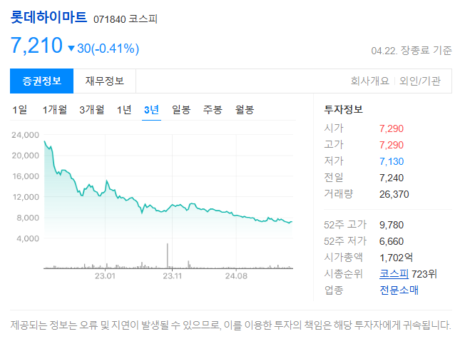 그렇다면 지금의 주가는 과연 적정할까요? 현재 롯데하이마트의 주가는 주가순자산비율(PBR) 0.4배 수준으로, 명백한 저평가 국면입니다. 이는 시장이 아직도 이 회사의 실질적 회복 가능성에 확신을 갖지 못하고 있다는 방증이기도 합니다.